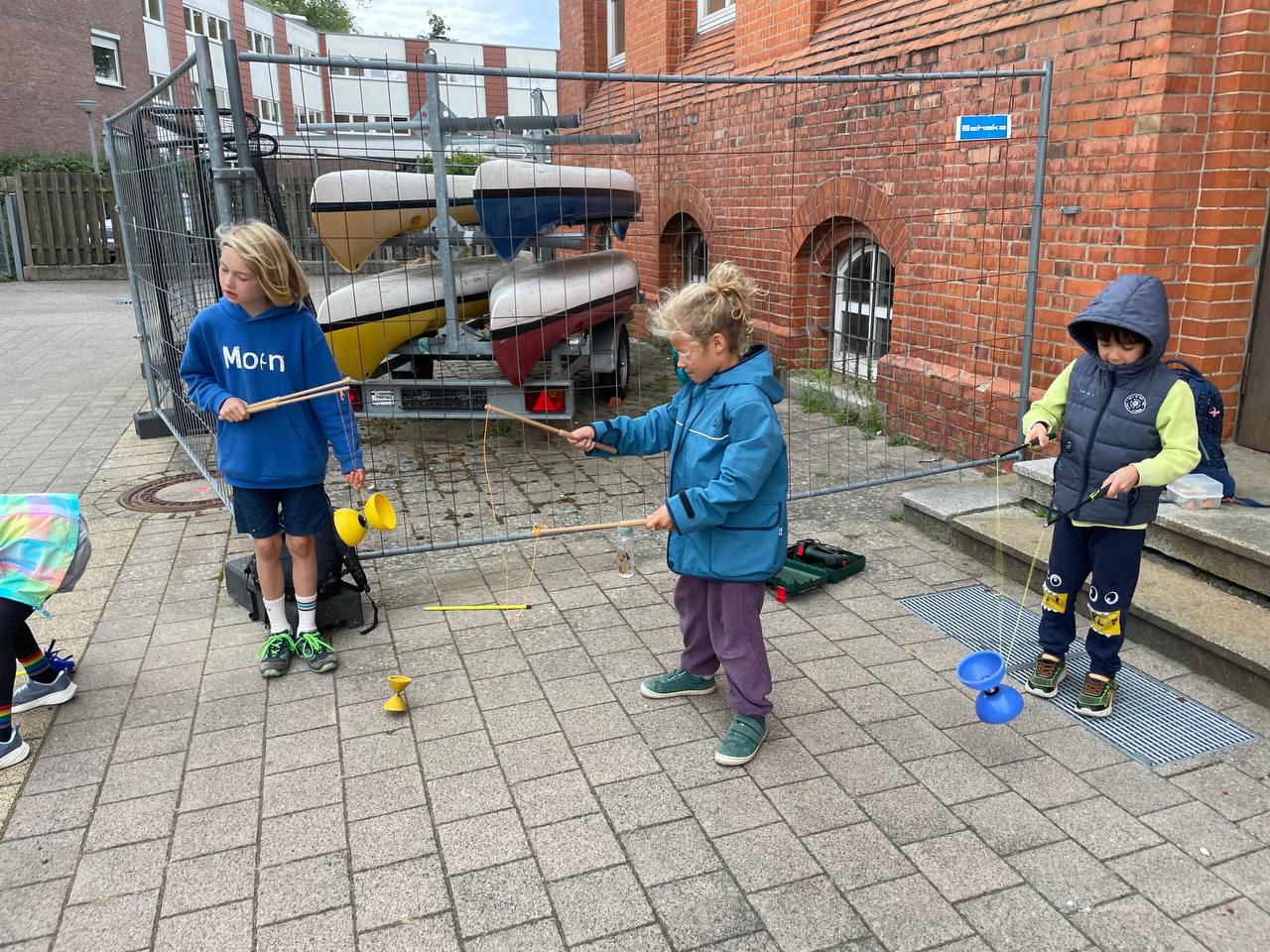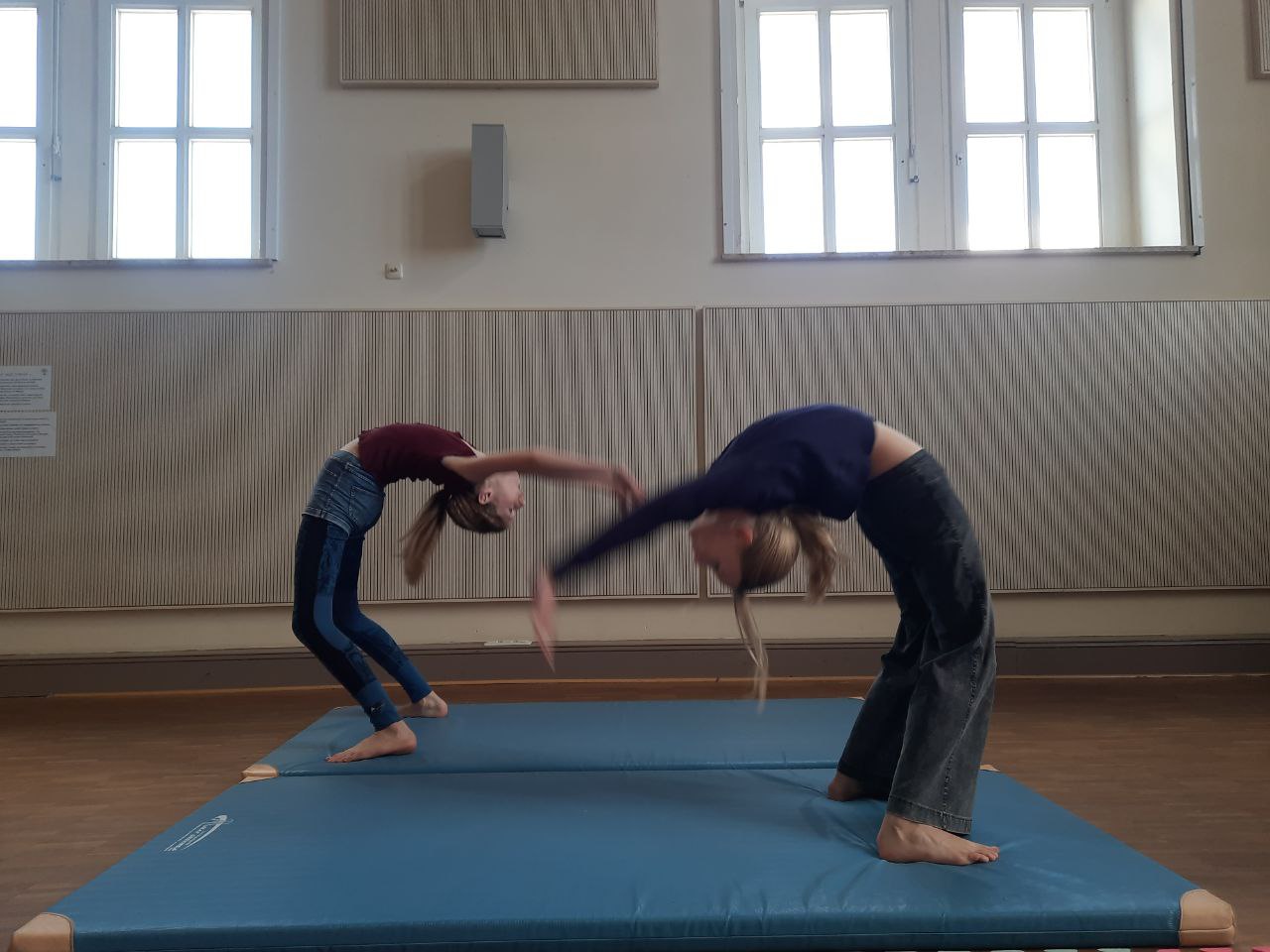 Unsere breitgefächerten Angebote variieren, sie reichen von Zirkusshows über Kochen, Experimentieren, Theaterspielen, Singen, Werken, Klettern, bis hin zu Kampftechniken, Yoga, Akrobatik und Parkour. Einen Tag in der Woche verbringen wir in der Natur, im Wald oder auf unserem neuen Grundstück.