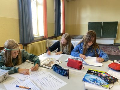 Gruppenzeit im Hafen. Nachdem wir uns in den letzten Wochen mit dem Boden und den Organen der Pflanzen beschäftigt haben, folgte jetzt eine Einheit über Pilze. Es ist sehr interessant zu beobachten, wie viel Wissen zu einem Thema bereits in der Gruppe (verteilt) vorhanden ist und wie gut sich die Kinder gegenseitig dann ergänzen können. Einen Teil der Gruppenzeit nutzen wir zum konzentrierten Schreiben oder zeichnen.