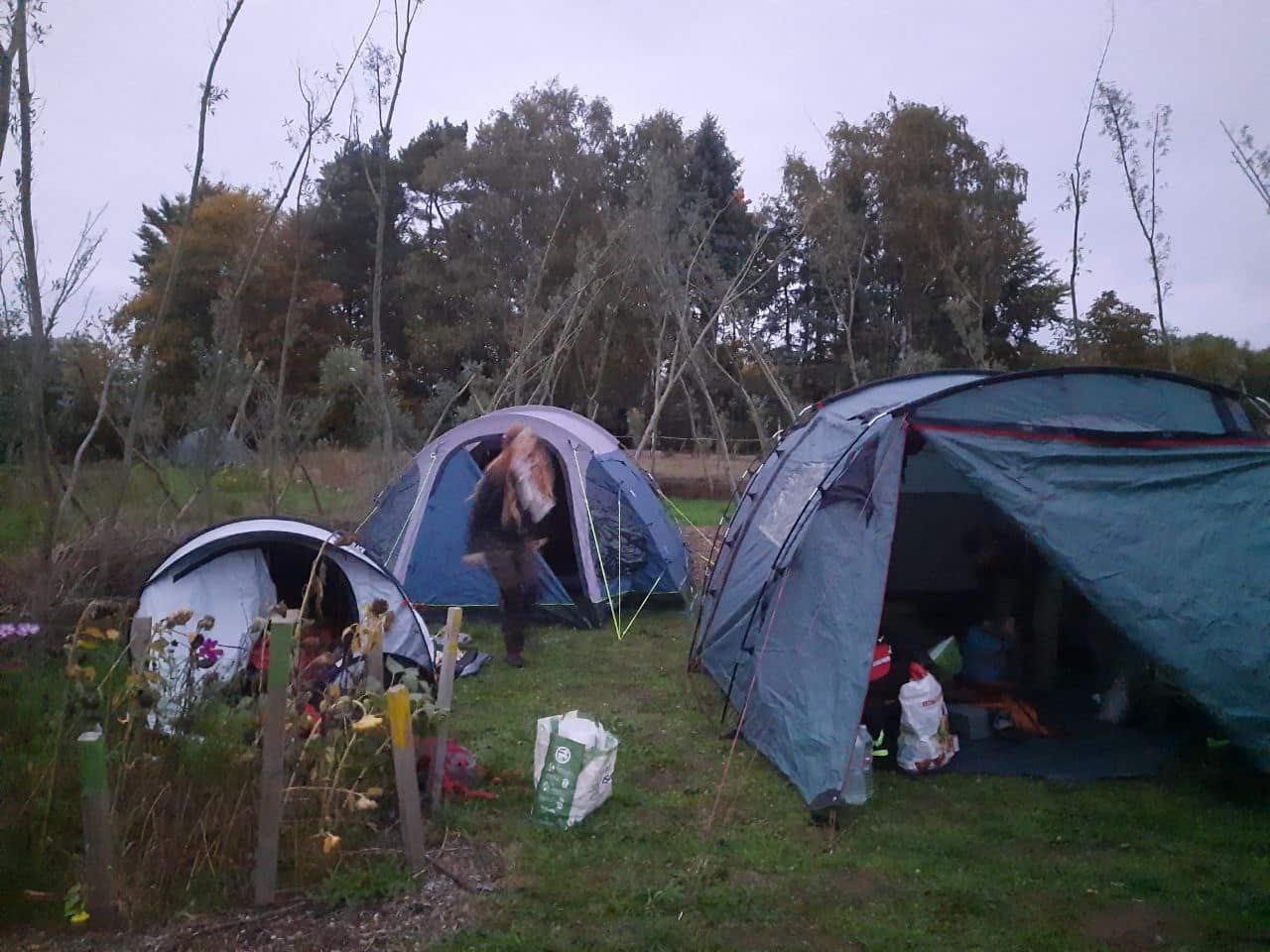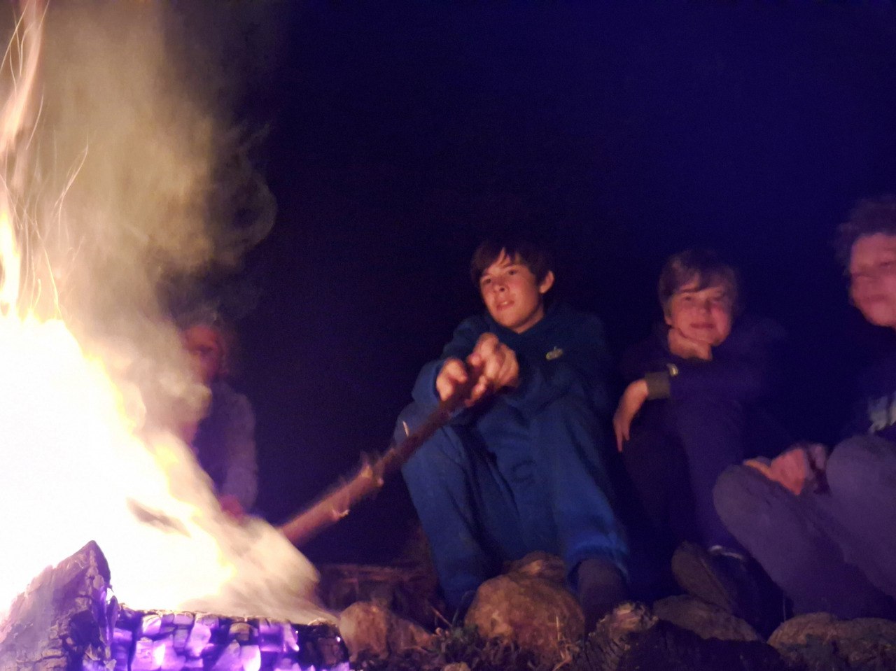 Mit etwas Hilfe von Eltern und älteren Kindern waren die Zelte schnell aufgebaut und wir haben uns zum (freiwilligen) gemeinsamen Abendbrot am Lagerfeuer getroffen. Dadurch dass es so früh die Dunkelheit war es schwierig, die Zeit zu schätzen.Immer wieder kamen Kindergruppen ans Lagerfeuer um verschiedene Varianten von „Stille Post“ oder „Geschichten erfinden“ zu spielen, sich zu unterhalten oder noch ein Stockbrot zu grillen. Und auch hier merken wir am respektvollen Miteinander, wie gut wir uns inzwischen kennen und aufeinander verlassen können.