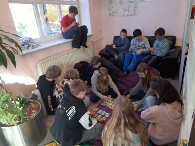 Mehrere Kinder haben sich selber Spiele ausgedacht, entworfen und ihren Mitschülern erklärt. Im Weltraum wurden diese dann gespielt. Toll ist zu sehen, wie wertschätzend die Kinder mit den entworfenen Spielen umgehen. Es werden auch mal Vorschläge zur Verbesserung gemacht, aber alles sehr respektvoll.