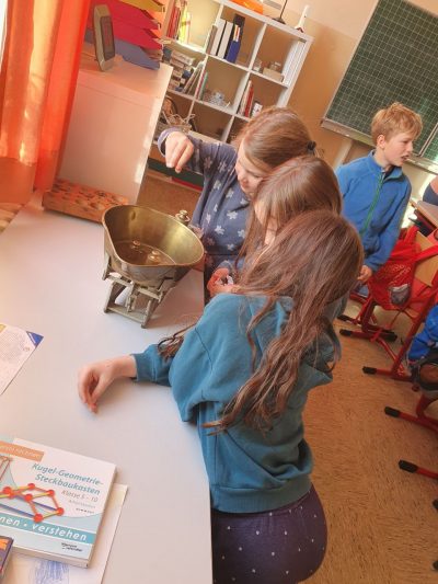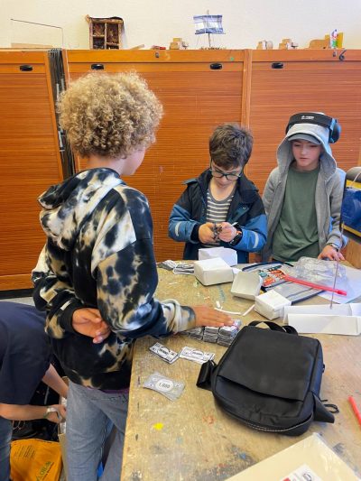 Es besteht weiterhin großes Interesse an 3D-gedruckten Teilen. Viele Kinder finden die Idee, einen Kettenanhänger mit ihrem Namen zu drucken, toll und entwerfen sie selber mit einem entsprechenden Programm. Aber auch Teile wie ein besonderer Würfel für ein selbst entwickeltes Spiel wurden erstellt! Wir haben beschlossen, den Drucker in der Schule zu behalten, damit wir nicht immer nur einen begrenzten Zeitraum für das Drucken haben, sondern er auch mal über Nacht laufen kann. Unabhängig vom Drucken haben einige Kinder langanhaltend Freude daran, in dem 3D-Programm zu spielen und zu experimentieren.