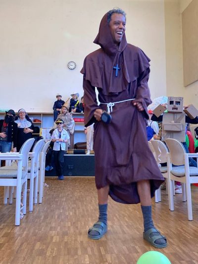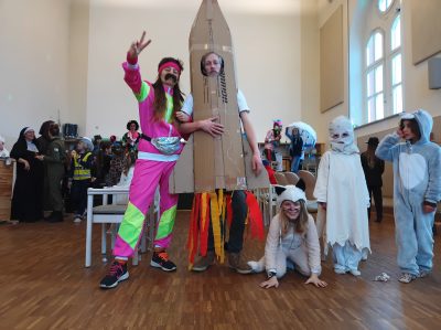 Dieses Jahr wollten fast alle mitfeiern und hatten sich verkleidet. Hätten wir dieses Jahr eine Wahl um das schönste- oder einfallsreichste Kostüm gemacht, dann hätten wir wohl auf beiden Treppchen zweistellige Gewinnerzahlen.
