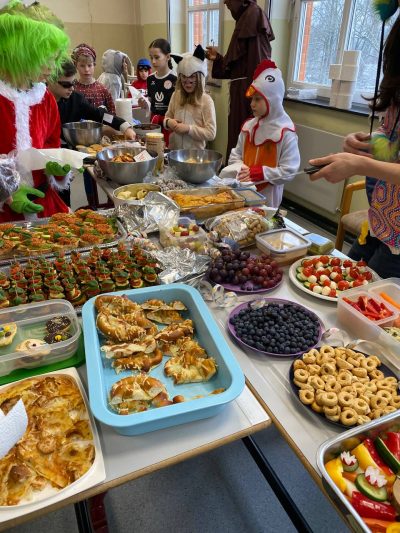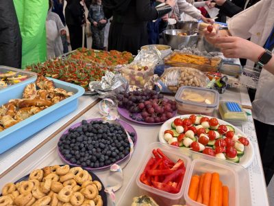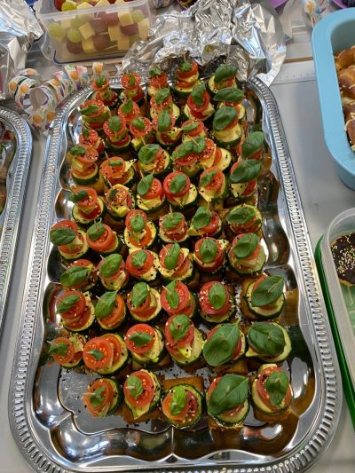 Herzlichen Dank an alle, die diese Köstlichkeiten für uns zubereitet haben! Glutenfrei, vegan, vegetarisch, frisch, süss und salzig, schön angerichtet, selbstgemacht, jeder konnte sich satt schlemmen. Es schmeckte wirklich richtig gut, besser als in vielen Restaurants. Ja, liebe Köche, ihr habt euch mal wieder selbst übertroffen! Ihr seht (und könnt es leider nicht probieren): Es gibt hier ein paar echte Kochtalente in der Elternschaft!