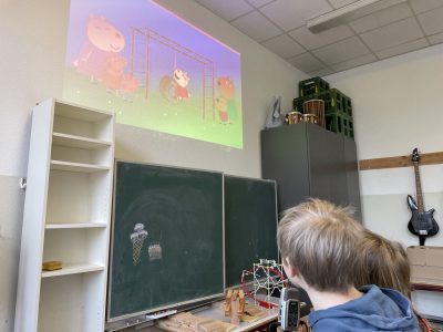 Einblicke in die Nachsynchronisierung von Peppa Wutz, ein Projekt das die Kinder über Stunden gefesselt hat. Edward spielt eine kleine Filmsequenz ab und die Kinder erfinden dazu neue Dialoge, oder sprechen mit ihren Stimmen den Dialog neu, überlegen sich passende Geräusche und passende Musik und spielen das ganze professionell ein, bis eine neue Tonspur zu den Bildern entsteht.