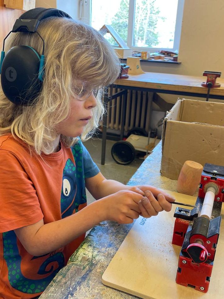 Einige Kinder haben am Freitag zum ersten Mal die Drechselmaschine ausprobiert: “Ich finde dafür, dass ich das zum ersten Mal gemacht habe, ist es mir schon echt gut gelungen.‘