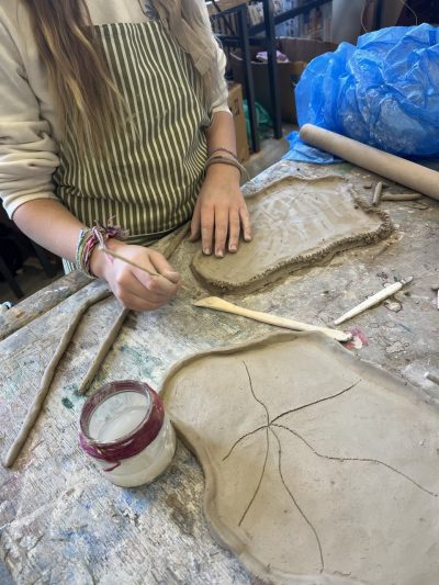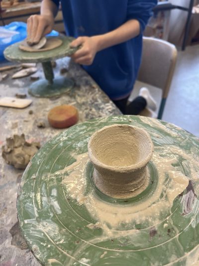 Hier seht ihr eine ganz eigene Methode, um beim Töpfern eine runde Form zu erhalten. Es waren diesmal einige Kinder sehr ausdauernd und vertieft dabei und haben schöne, kreative Dinge aus Ton erschaffen.