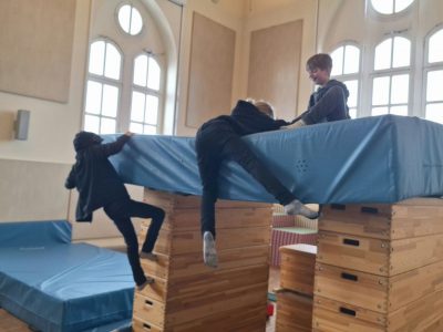 Unsere Parkour Fans haben diese Woche mit Lukas Kick Up, Handstandüberschlag & Rückwärtssalto, sowie Radwenden, Handstandüberschlag und Flickflack geübt.
