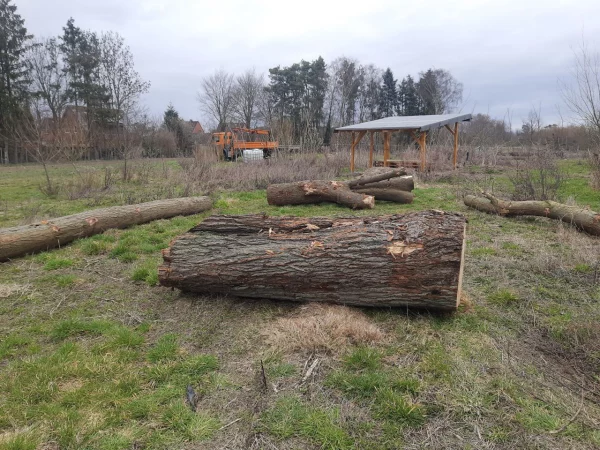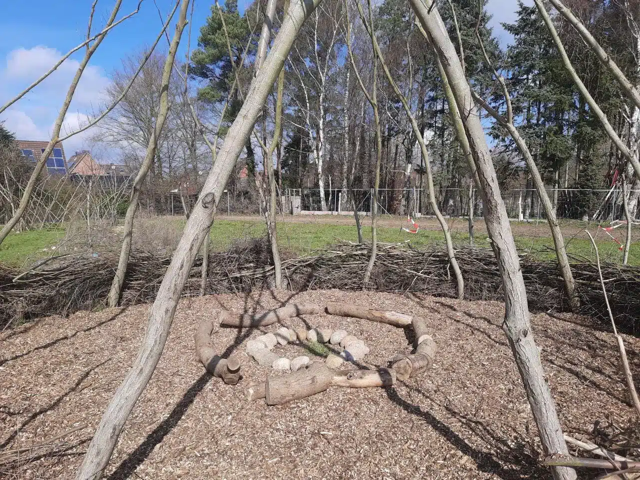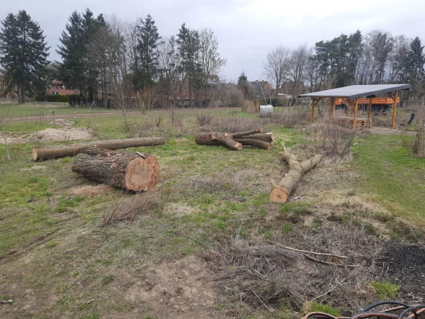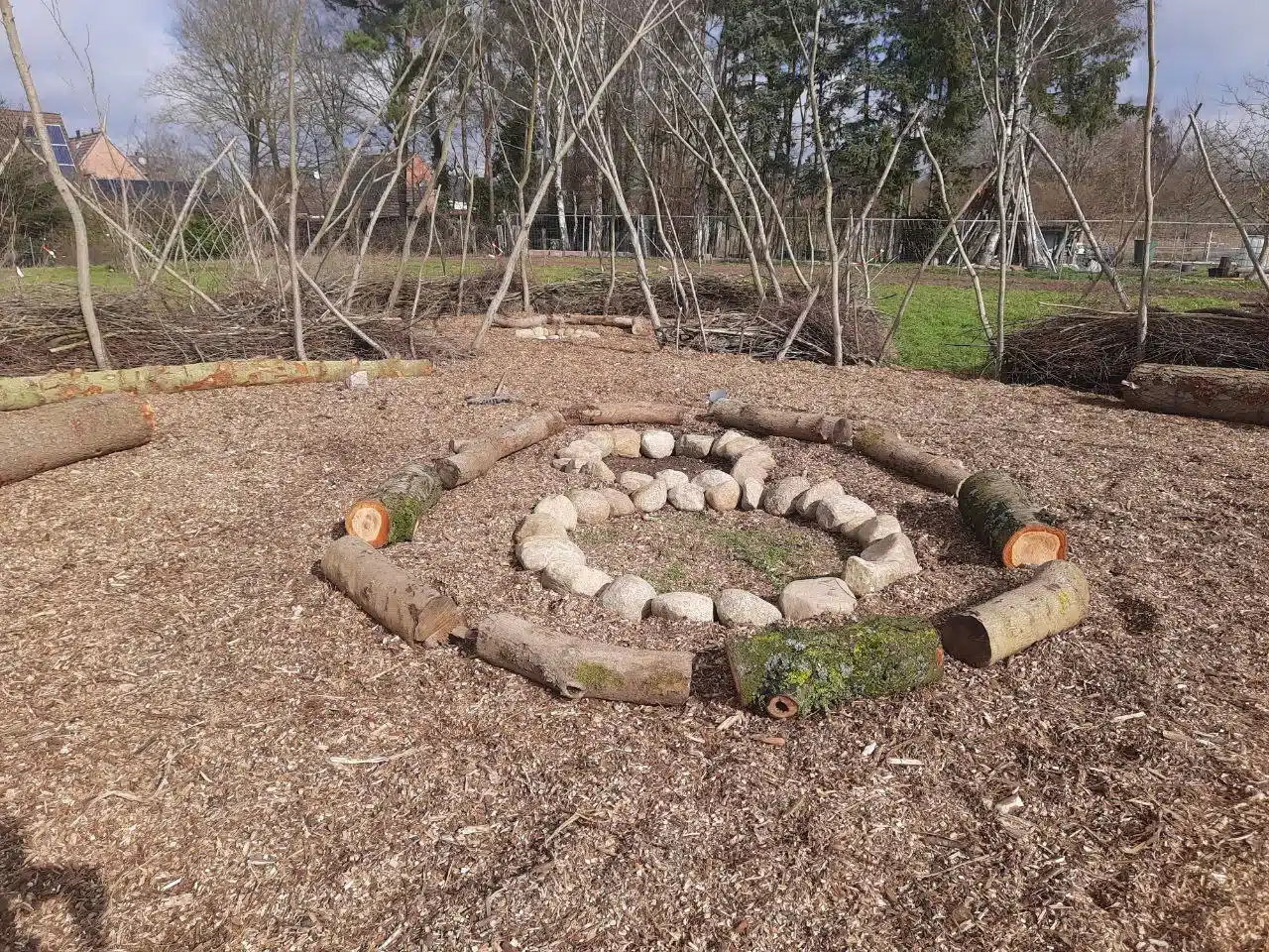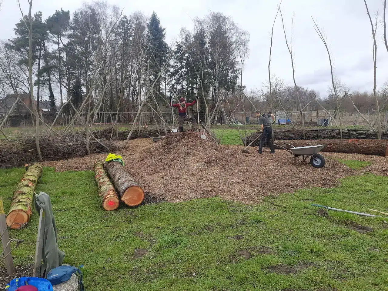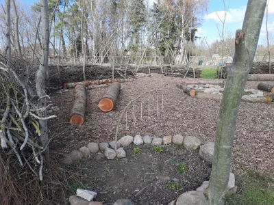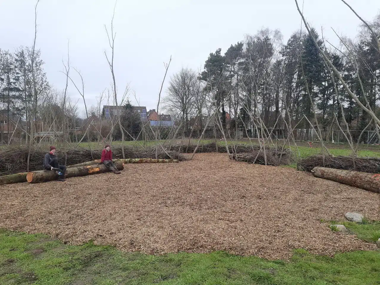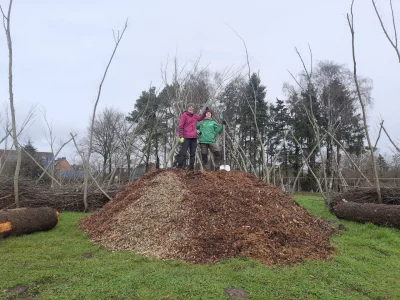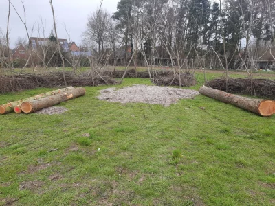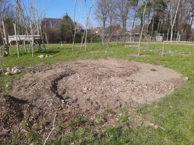 Wir haben insgesamt gut 12m² Holzhackschnitzel hier verteilt: Unser neuer „Naturraum“ für Treffen der Schulgemeinschaft und für den Naturtag ist jetzt gemütlich ausgestattet. Außerdem haben wir ein paar Baumstämme bekommen! Zum Sitzen, zum Balancieren oder für einen Renn- und Springparcours.