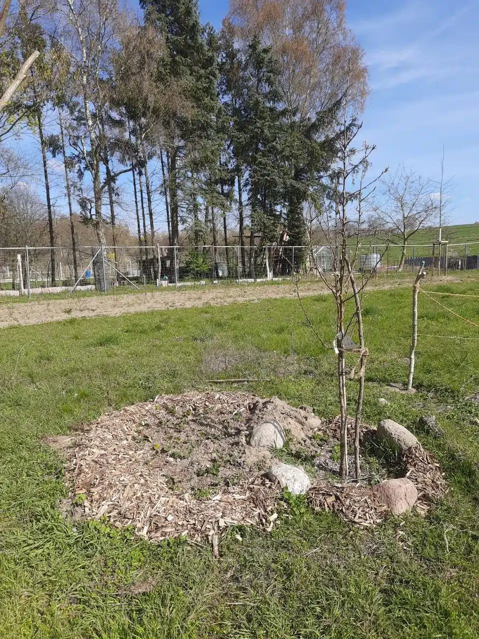 André hat uns drei Bienenbäume geschenkt. Hier wächst der erste.
