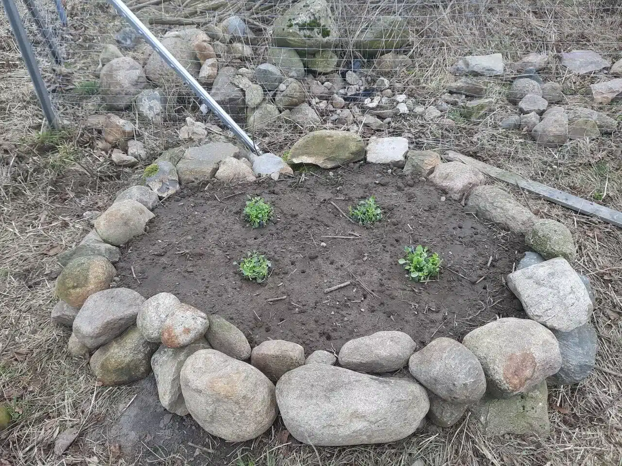 Ein erstes kleines Steinbeet an der Straße, noch sieht man nicht viel.