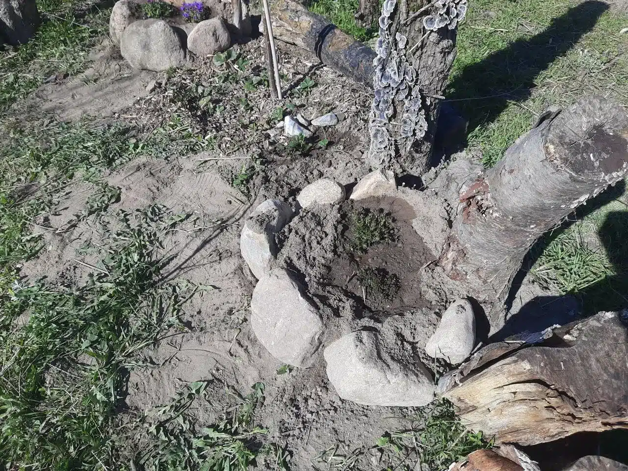 Hier entsteht eine kleine Ecke mit Totholz und Steinen, für unsere kleinen Helfer, mit einem Lurchhügel, in dem schon ein kleiner Lurch wohnt.