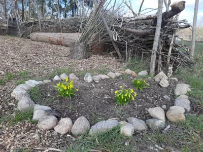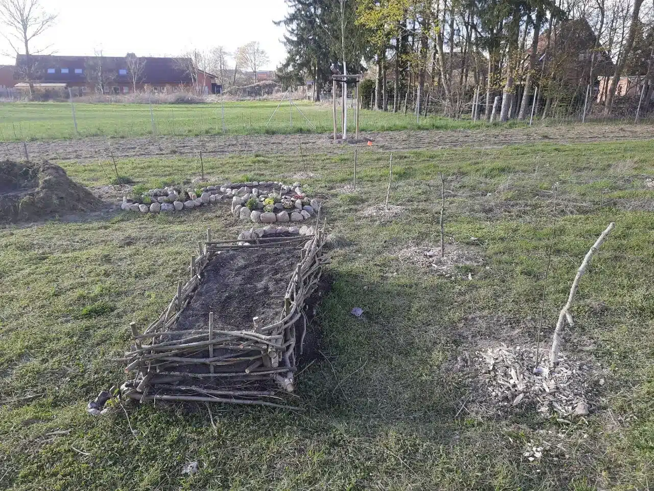Seitdem die Schneedecke verschwunden ist, enstehen in unserem grünen Klassenzimmer nach und nach verschieden neue Elemente. Wir möchten den Garten so gestalten, dass man sich hier willkommen und wohl fühlt. Je nachdem, wie es einem gerade geht und was man grade tun möchte, kann man hier spielen, bauen, verweilen, Obst naschen, Lagerfeuer machen, in Ruhe sein, Kraft tanken, Blumen und Kräuter entdecken, Tiere und Insekten beobachten und später hoffentlich auf Bäume klettern.