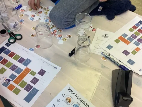 Zum ersten Mal haben die Kinder in der Gruppenzeit sich verbindlich für die 10 Uhr Angebote, oft aber auch schon für weitere Angebote um 11 oder 12 Uhr eingetragen. Am Montag waren wir alle ganz schön herausgefordert, die vielen verschiedenen Angebote und deren Inhalte zu vorzustellen bzw zu verstehen und das in den Plan einzutragen. Die Kinder mussten sich an dem Morgen entscheiden, wo sie diese Woche teilnehmen wollten. Die Lernbegleiter waren herausgefordert, die Ergebnisse möglichst bald in eine Plattform einzutragen, zu der alle LB Zugang haben, um zu sehen, für wie viele Kinder sie ihre Angebote vorbereiten müssen.