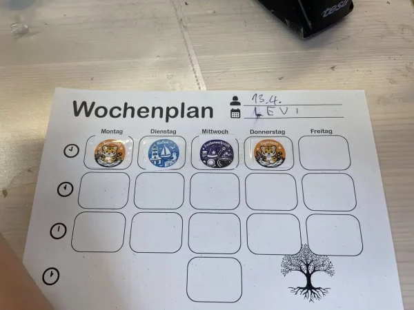 Diese Woche wurde noch viel getauscht und einigen Kindern war noch nicht klar, in welchem Raum das jeweilige Angebot stattfindet. Manche waren am Montag nicht da gewesen und hatten die Einführung verpasst. Dafür hatten wir an alle Eltern den Stundenplan verschickt, damit jeder die Chance hat, mit seinem Kind darüber zu sprechen und es zu verstehen.