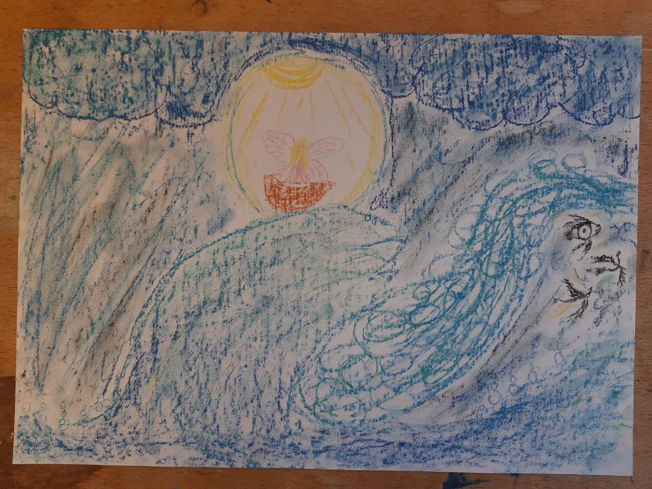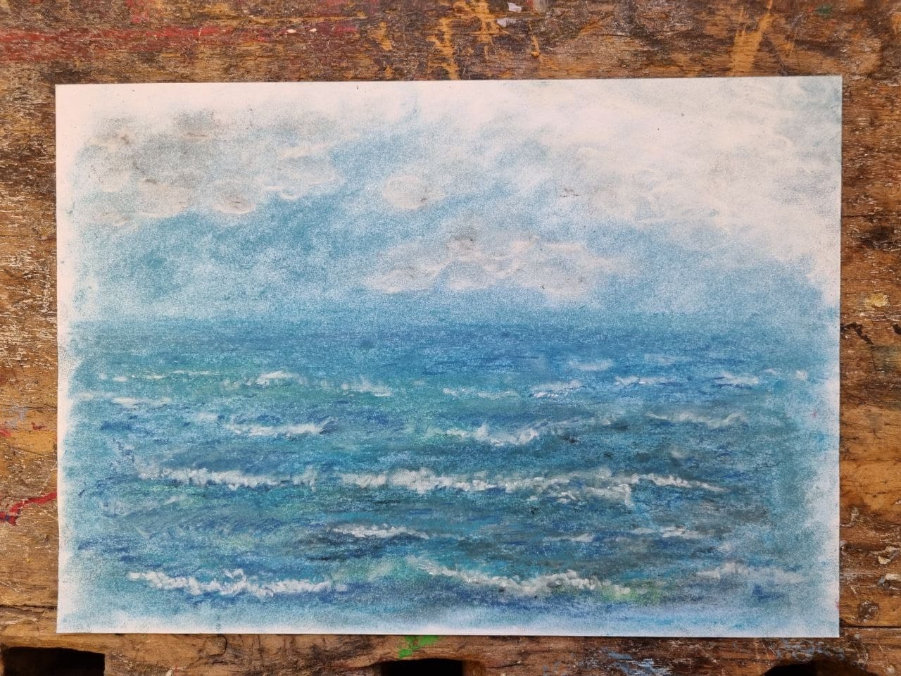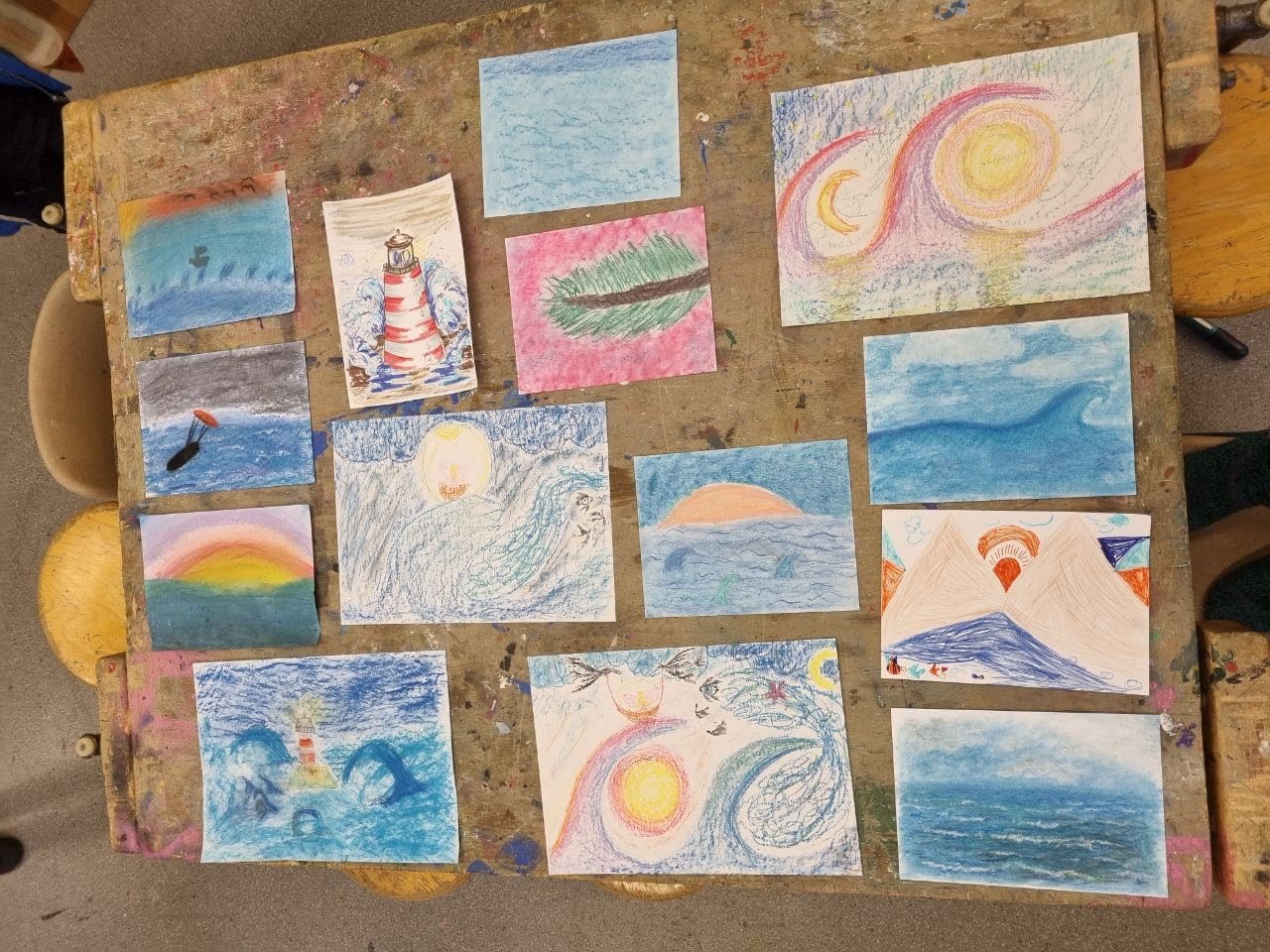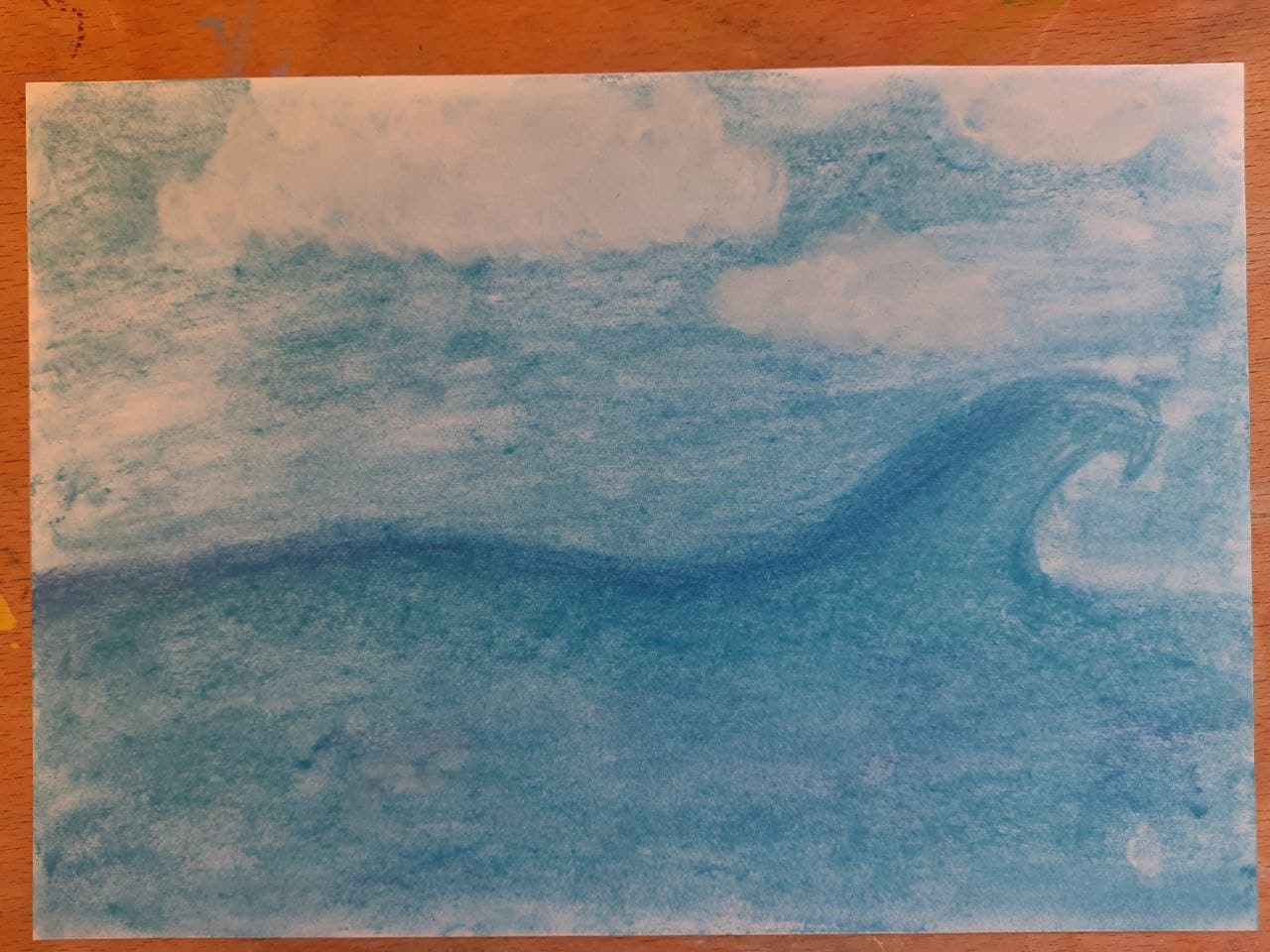 Eva hat uns auf einen Malwettbewerb aufmerksam gemacht. Obwohl zunächst keiner teilnehmen wollte, reizte einige Kinder das Thema “Wind und Wellen”, oder auch das Preisgeld von 200 Euro. Andere wiederum hatten Lust mit dem Material Kreide zu experimentieren.