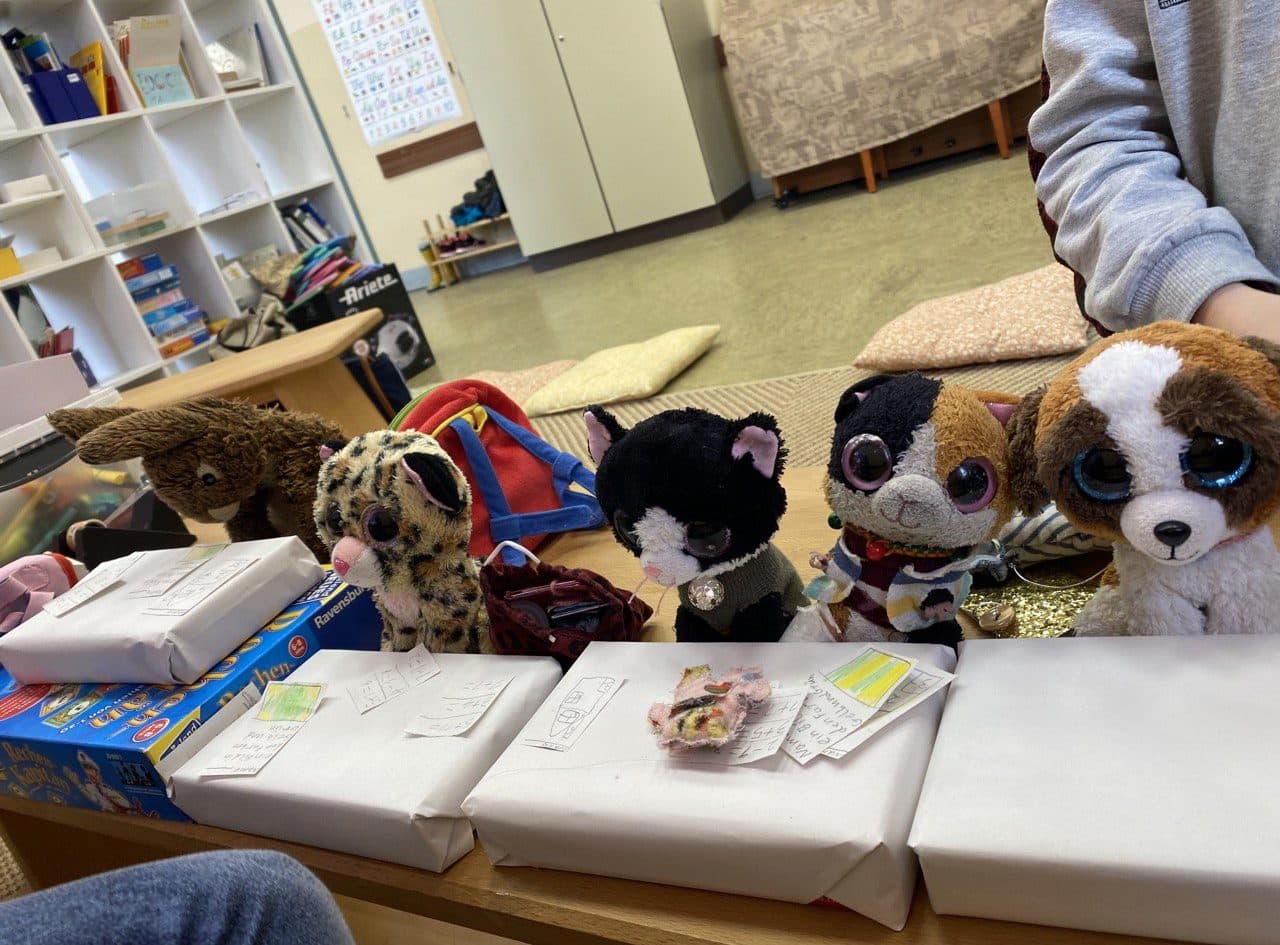 Wir gehen in die Schule und haben Unterricht bei unseren Lehrerinnen Emma, Jule, Emma und Lene (Achtung: richtig streng!). Wir müssen in der Schule eine Menge Arbeitsblätter ausfüllen, die unsere Lehrerinnen für uns selbst entwickeln. Wir müssen natürlich auch die Hausaufgaben erledigen, die sie uns aufgeben und immer die richtigen Schulsachen in unseren selbstgebastelten Mappen und Rucksäcken dabei haben. Oft müssen wir an unseren Tischen sitzen und gut aufpassen.“