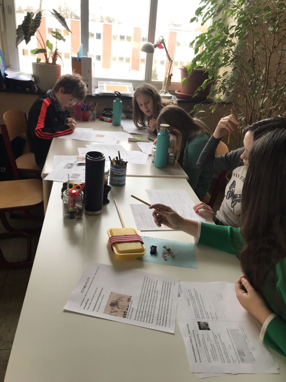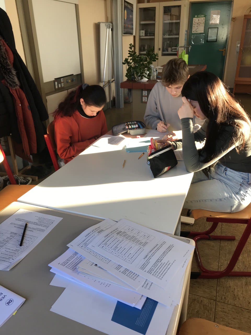 Einige unserer älteren Schüler haben sich inspiriert durch Olesja mit dem Beruf „Restaurantfachfrau“ auseinandergesetzt. Leni überarbeitet grade ihren Biologie Vortrag für ihre MSA Prüfung.