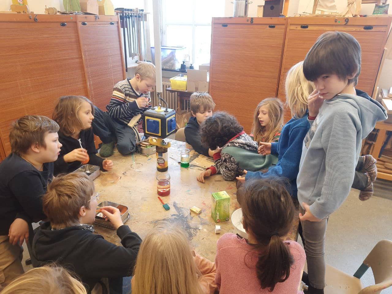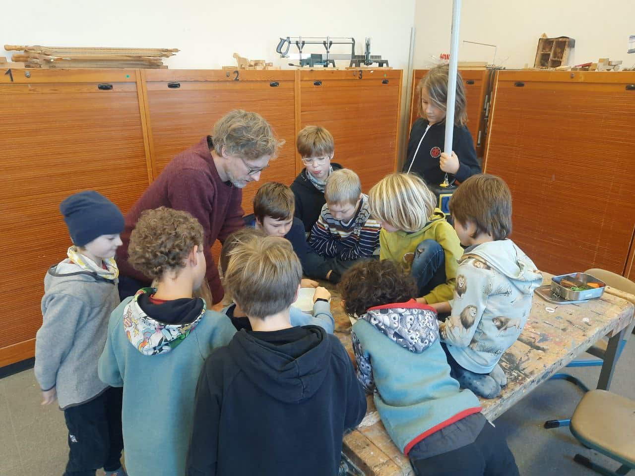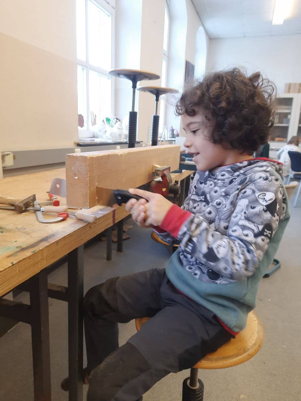 Zitat einer Schülerin: “Ich war letztens im Werkraum, um mir ein Stück Holz zum Brandmalen zu holen. Da habe beobachtet, wie viel Spass den Kindern das macht, an ihren Sachen herumzuwerken. Alle waren ganz beschäftigt. Sie waren so glücklich dabei.”