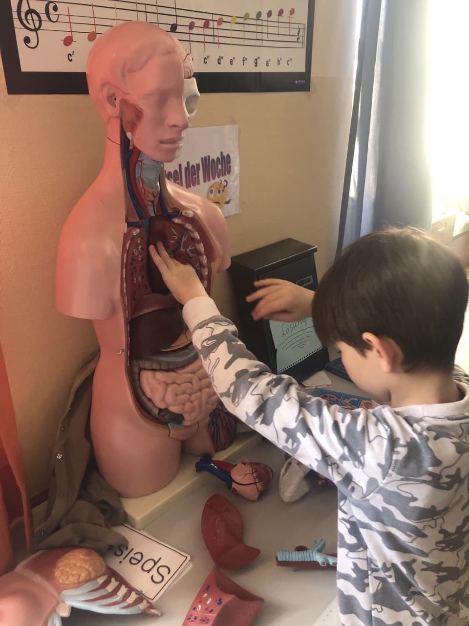 Am Mittwoch haben wir unseren ersten Erste-Hilfe-Kurs für Kinder durchgeführt. Wir haben uns mit dem Herz-Lungen-Kreislauf beschäftigt und erfahren, warum die ErsthelferInnen im Falle eines Kreislaufstillstandes eine so wichtige Rolle spielen: Bis zum Eintreffen des Rettungsdienstes dauert es durchschnittlich 9 Minuten. Das Gehirn kann aber schon nach 3-5 Minuten unwiederbringlichen Schaden erleiden. Hier ist das Zeitfenster für ErsthelferInnen. Länder in denen in der Schule regelmäßig Erste-Hilfe-Kurse angeboten werden, haben deutlich höhere Überlebensraten bei plötzlichen Herz-Kreislaufstillständen. Mit Interesse haben die Kinder verfolgt, wie im Notfall reagiert werden sollte und ihr Wissen dann mit Eifer in die Tat umgesetzt.