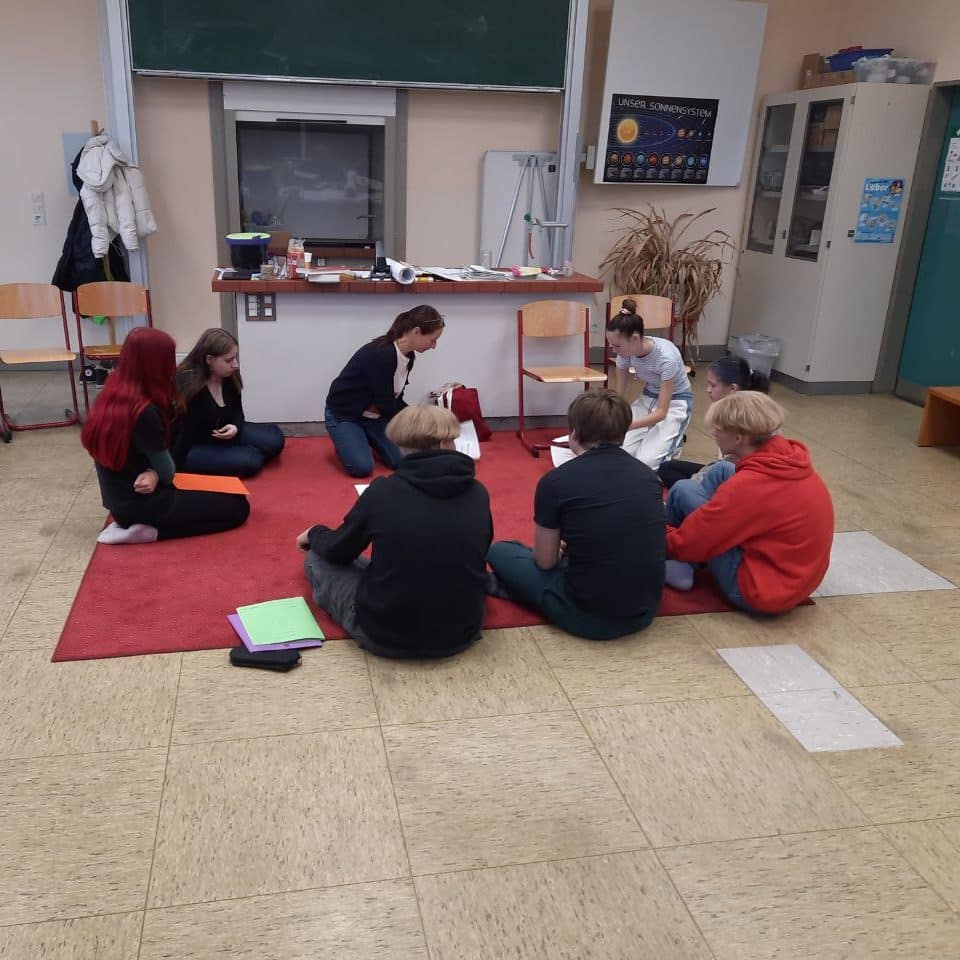 Einige Kinder haben bei diesem Gespräch von vorn herein zu gemacht und durch coole Sprüche, laute Geräusche, Scherze, (auch ihre Freunde lächerlich machen), sich gegenseitig ins Wort fallen und sich gegenseitig nicht zuhören einen wirklichen Austausch unmöglich gemacht. Niemand hat sich vor den anderen getraut zu sagen, was er wirklich denkt und will. Und auch, wenn mehr angekommen ist, als wir während des Gespräches gedacht hätten…Wir lernen daraus und ändern die Strategie. Freie Schule bedeutet für uns nicht, Kinder einfach in ihrer Coolness und Ignoranz uns und ihren Freunden gegenüber allein zu lassen.