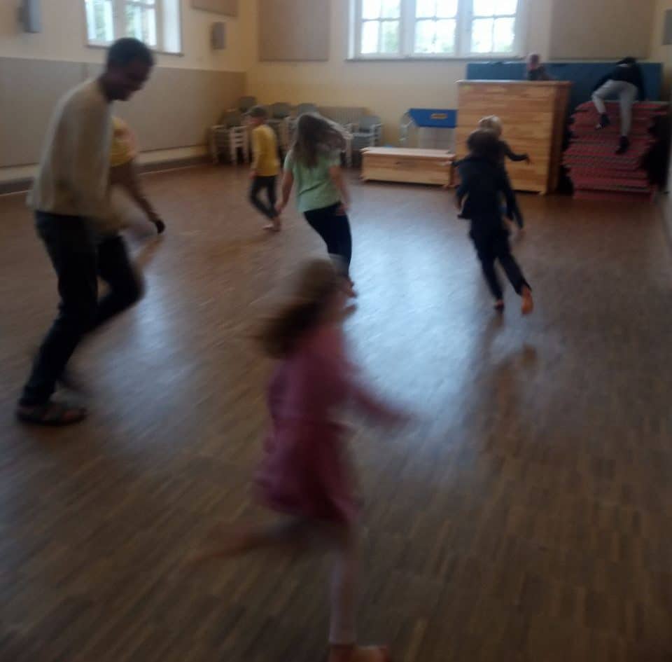 Im Bewegungskreis spielen die Kinder grade gern Tick-Spiele: zum Beispiel Lavaticken oder Eisticken, wie hier mit Edward. Parkour mit Lukas ist nach wie vor ein Grund, alle anderen Aktivitäten an dem Tag links liegen zu lassen.