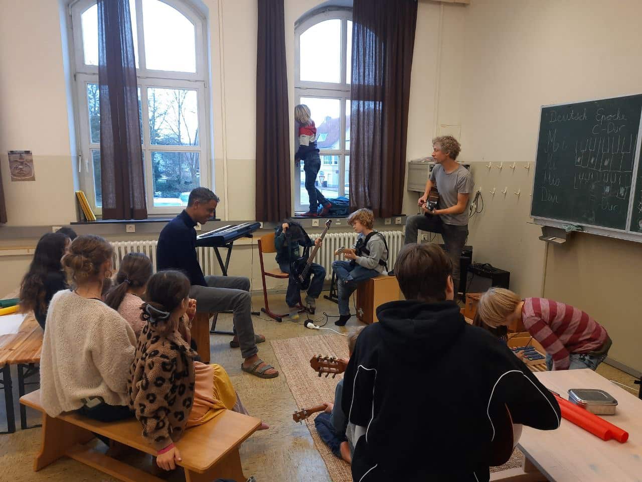 Freitags ergibt sich immer mal wieder eine Jamsession, wie in einer echten Band. Dieses Mal sogar mit mehreren interessierten Zuhörern.