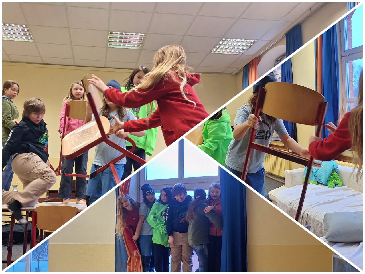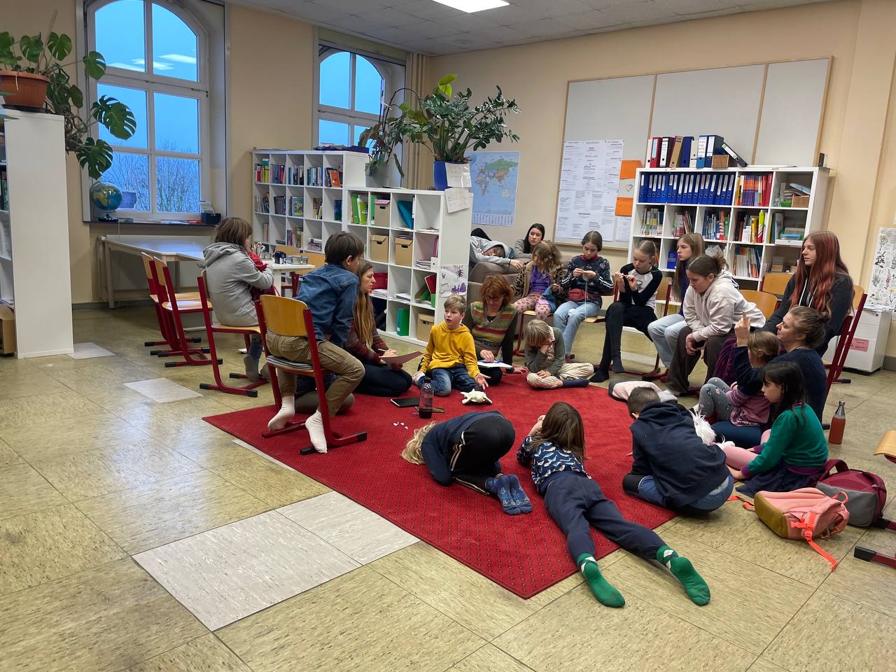 mit der “Gruppenzeit” war eine Herausforderung für einige Kinder, denn wir haben plötzlich etwas Neues, Anderes gemacht. Es gab verständlicherweise Widerstände bei einigen, (wenigen) Kindern, – wir haben dann mit den betroffenen Kindern gesprochen- (und geguckt was sie brauchen, wie es für sie gehen kann-) die sich aber in den folgenden Tagen aufgelöst haben. Wir haben sie gebeten, sich ein paar Mal darauf einzulassen, es auszuprobieren und dann mit uns gemeinsam in einer SV zu überlegen, wie die Gruppenzeit für alle bereichernd sein kann. (s.u.) Nach diesen ersten fünf Gruppenzeit-Tagen ziehen wir Lernbegleiter ein sehr positives Fazit aus der Gruppenzeit. Abgesehen von ein paar Schwierigkeiten denen wir an manchen Stellen begegnen…ist die Grundstimmung in den Gruppen positiv. Viele Kinder sind sehr eifrig dabei und freuen sich über die gemeinsamen Übungen. Wir bemerken, dass sich viele Kinder richtig Mühe geben um ihre Arbeit gut zu machen. Wir können spüren, dass sie es selber möchten. Es gibt jeden Tag kleine Erfolge zu feiern. Morgens herrscht jetzt eine sehr konzentrierte und konstruktive Stimmung in allen Räumen.