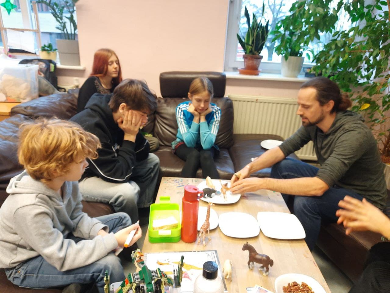 Manuel hat den Teilnehmern des zukünftigen Friedenskreises mit Hilfe von Schleichtieren sehr anschaulich erklärt, wie wir nach der Methode des „Restaurative Circle“ Konflikte klären können. Gregory und Elina leuchtete die Methode ein. Olesja und Lena lernen es auch, damit zukünftig immer zwei Lernbegleiter in der Schule sind, die Konflikte auf diese Art begleiten können.