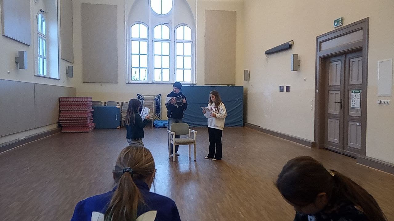 Im Theaterkurs haben wir diese Woche an den Charakteren unserer Rollen gearbeitet und die Texte gelernt, um die ersten Szenen auswendig zu spielen.