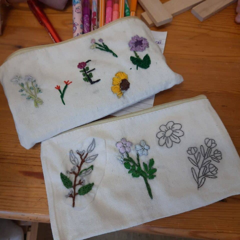 Im Hafen wurden diese Woche kleine Taschen fleißig bestickt. / Endlich lässt sich der selbstgebaute Wagen lenken.