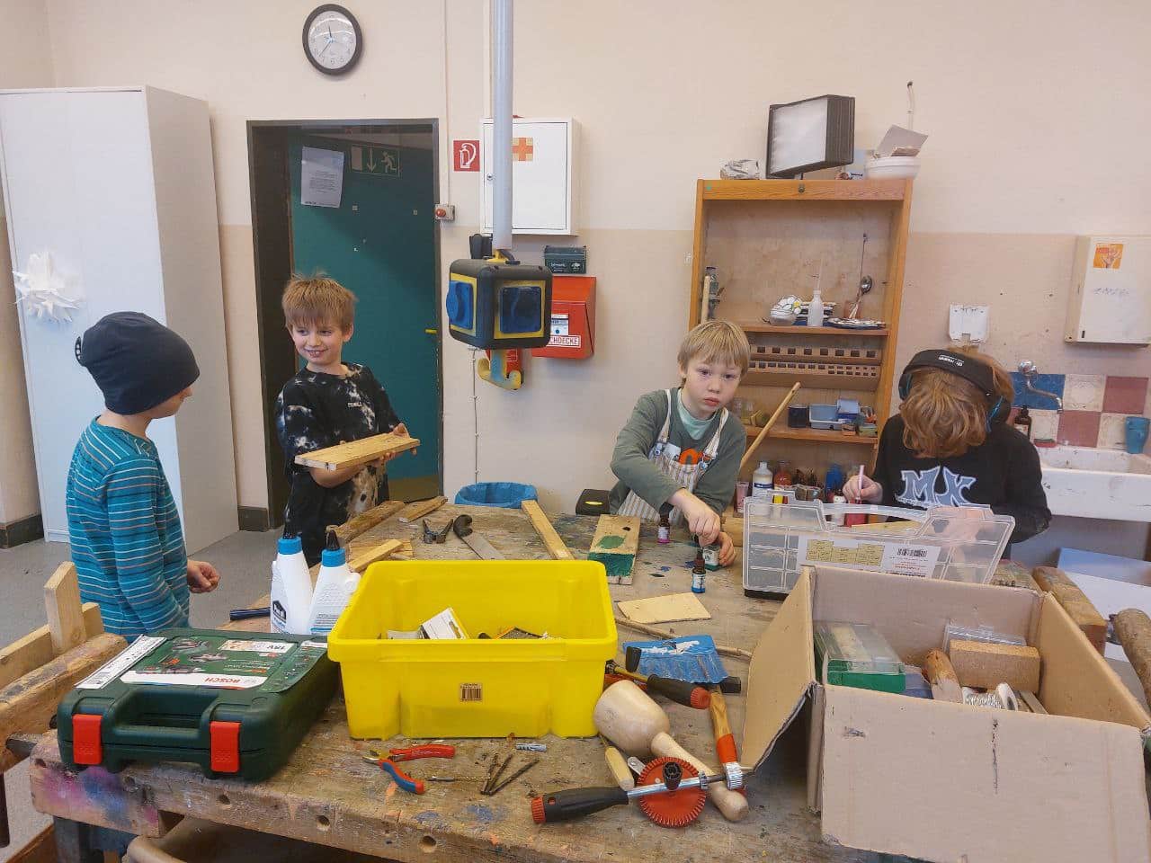 haben wir beschlossen, eine Projektwoche für alle zu starten. Alle haben eine Woche Zeit, sich für ein Projekt einzutragen, oder wenn keiner der Vorschläge passt, sich einen eigenen auszudenken. Alle haben mitgemacht und es sind noch Ideen hinzugekommen.