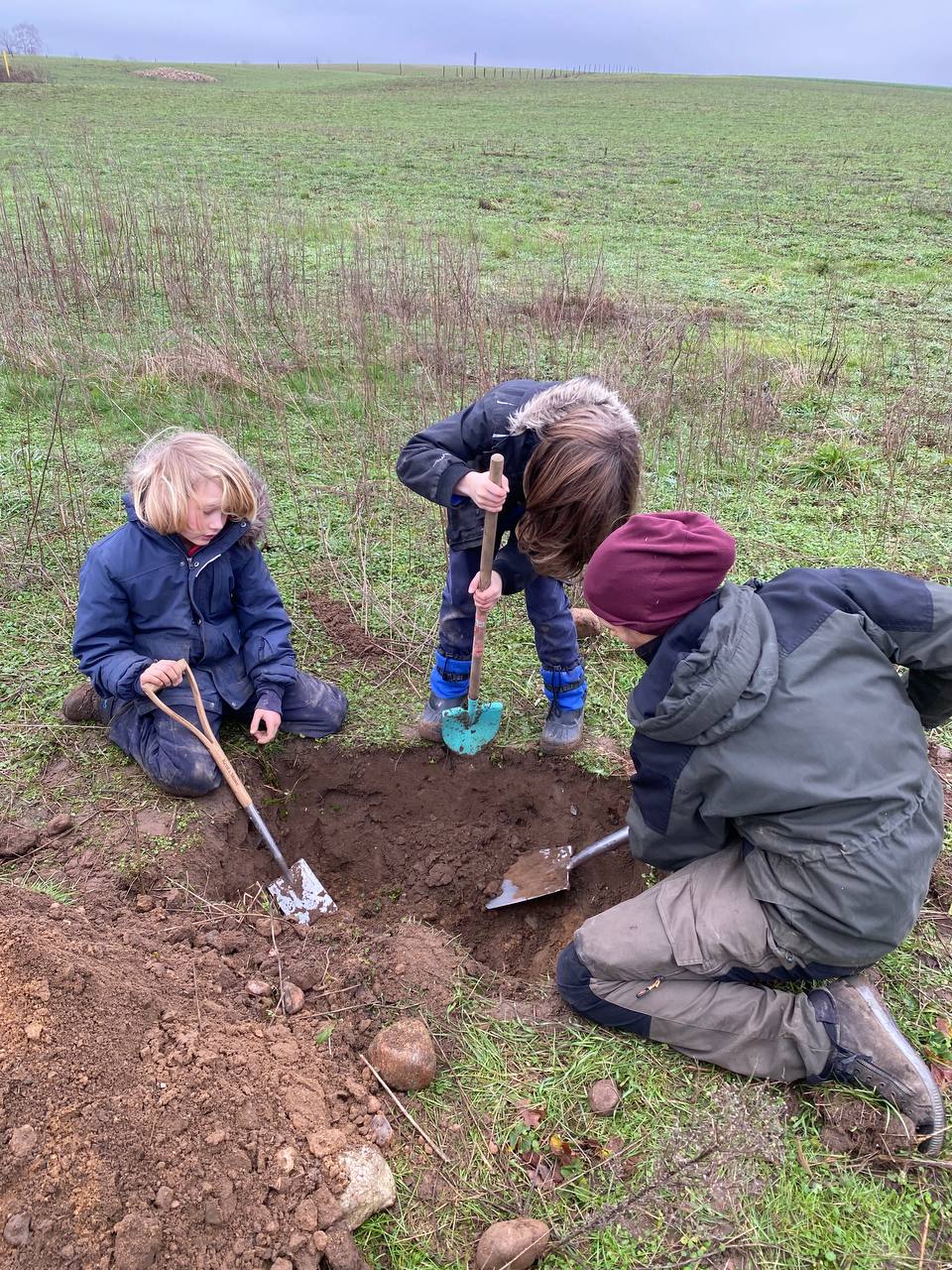 Wir haben Feuer gemacht und gemeinschaftlich Löcher gegraben. Die Suche nach der Gasleitung, die unter einem Teil unseres Grundstücks verläuft, hat begonnen. Wer sie findet, bekommt 50€, verspricht Lena. Wer Lust hat, sie zu suchen, also Grabe-Sport zu betreiben, melde sich gern bei Lena, oder kommt am Mittwoch mit zum Naturtag um zu graben. Sie erklärt euch dann die ungefähre Lage und Tiefe. (Es ist ungefährlich, nach ihr zu graben, sagte ihr der Fachmann.)