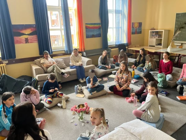 Als die Kinder innerlich begeistert und beeindruckt den Raum verlassen haben, war es so, als würden sie aus einer anderen Welt kommen, so besonders war die Atmosphäre, die Kathie bewusst in „ihrem Raum“ aufgebaut und mit den Kindern geteilt hat.