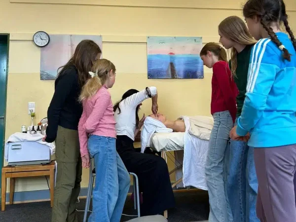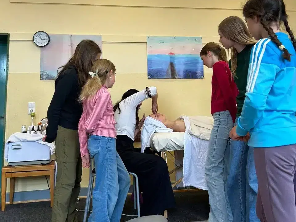 Emma hatte sich freundlicherweise als Model bereit erklärt und Kathie hat an ihr gezeigt, wie sie eine Gesichtsbehandlung durchführt und die Grundtechniken ihrer Massage erläutert und demonstriert.