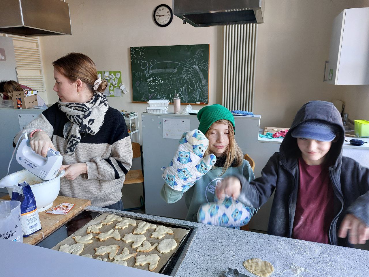Unsere breitgefächerten Angebote variieren, sie reichen von Zirkusshows über Kochen, Experimentieren, Theaterspielen, Singen, Werken, Klettern, bis hin zu Kampftechniken, Yoga, Akrobatik und Parkour. Einen Tag in der Woche verbringen wir in der Natur, im Wald oder auf unserem neuen Grundstück.